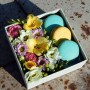 Удивительные макаруны с цветами - это маленькие произведения искусства, сочетающие в себе кулинарное мастерство и красоту природы. В этом наборе вы найдете три эксклюзивных макаруна, каждый из которых украшен утонченным цветком. Насладитесь их нежным вкусом и ароматом, одновременно радуя глаз красотой цветов. Эти макаруны станут идеальным угощением для особых моментов, праздников или просто для создания уютной атмосферы. Окунитесь в мир гастрономического наслаждения с нашими макарунами с цветами.